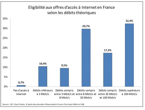 Dans la majorité, ces consommateurs sont situés dans les zones rurales alors que le plan du gouvernement concerne à priori les zones très denses. « Le meilleur du très haut débit est accessible pour moins de 1 % des habitants en Creuse et Dordogne, alors qu’il est pour plus de 90 % des habitants à Paris ou dans les Hauts-de-Seine », fait remarquer l’association.